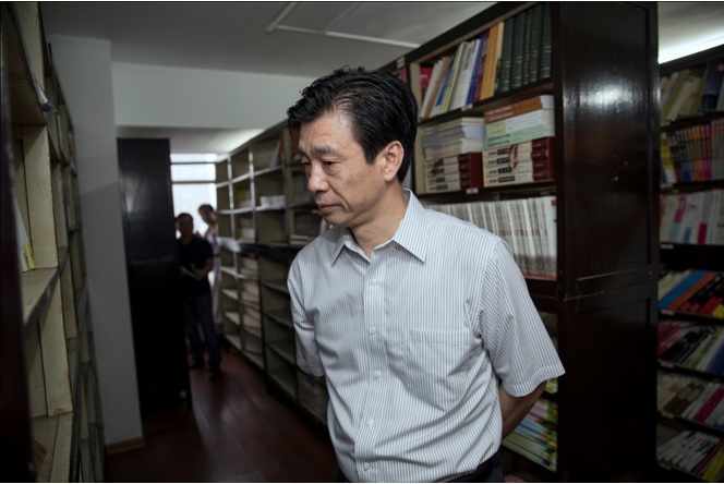 蔡振紅部長(zhǎng)參觀湖南人民出版社圖書(shū)收藏室。
