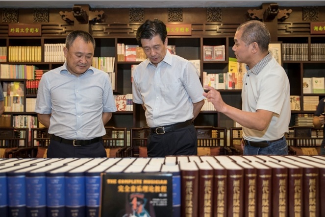 在湖南文藝出版社,蔡振紅部長(zhǎng)參觀該社出版的重要圖書(shū)品種。
