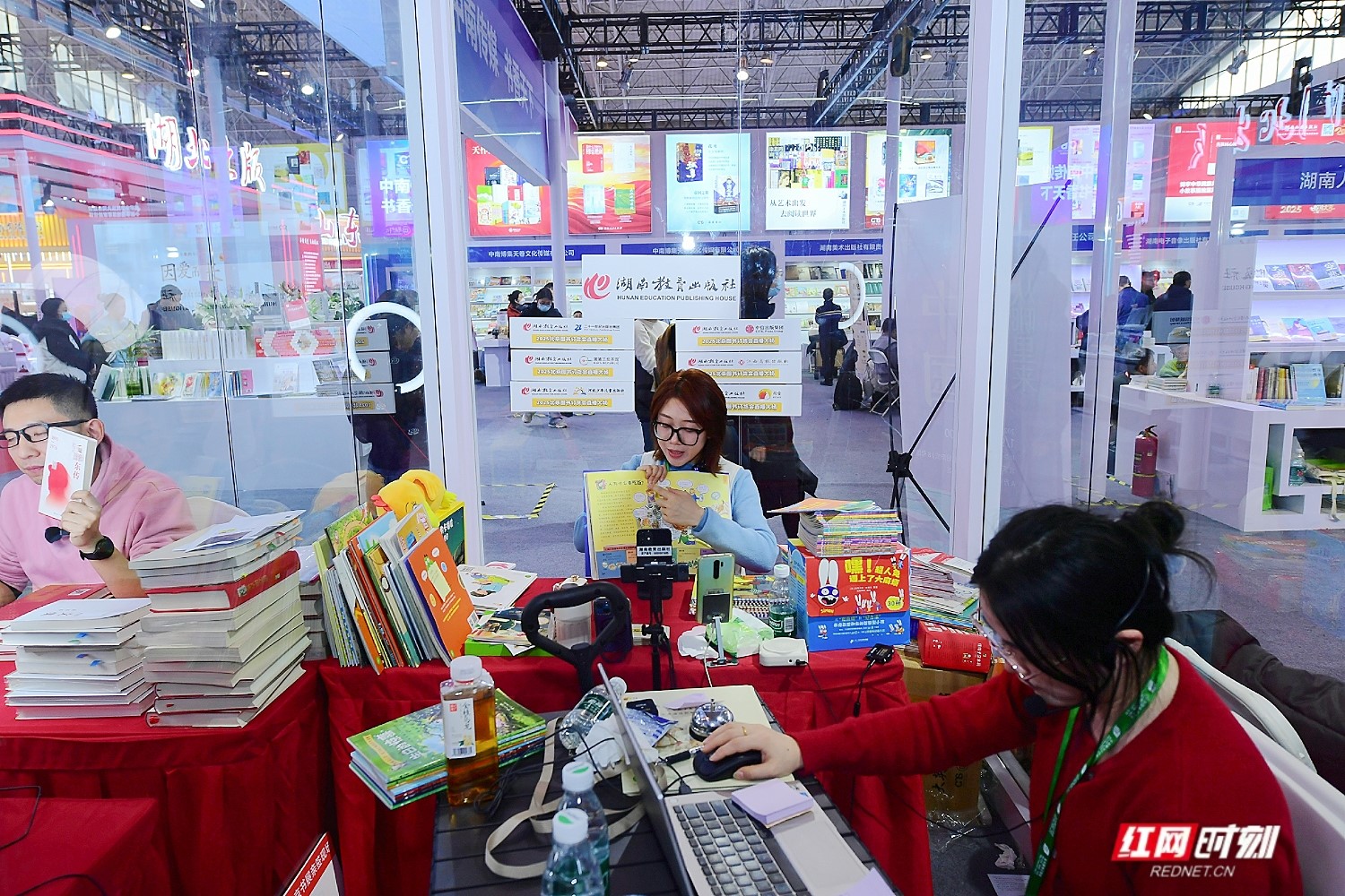連日來,在湖南出版展區(qū)的三個(gè)透明直播間里,工作人員穿梭不停,直播場次被排得滿滿當(dāng)當(dāng),駐足圍觀的大小讀者絡(luò)繹不絕。展會(huì)期間,中南傳媒旗下出版社在各直播平臺(tái)紛紛推出“北京圖書訂貨會(huì)福利專場”,在分享湘書精品的同時(shí),派發(fā)折扣好書和福利禮品,收獲大批讀者和網(wǎng)友的關(guān)注和點(diǎn)贊。